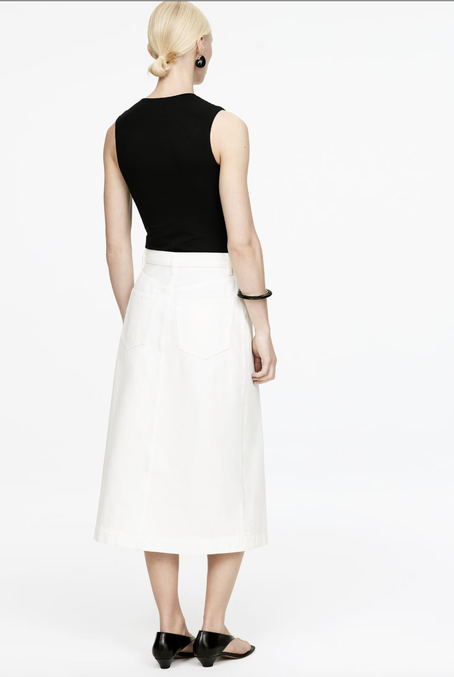 A knee length skirt can be a great choice if you are tall. It breaks up the leg lline and can create the illusion of a slightly shorter frame, adding balance to your overall look.
